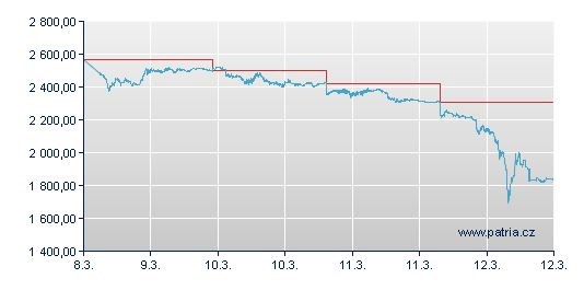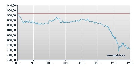 Americké akcie včera (12.3.2020) prudce klesly a propad indexů Dow Jones a S&P 500 byl nejvyšší od roku 1987. Burzy v Paříži, Miláně a Madridu zaznamenaly nejvyšší propad od svého založení stejně jako panevropský index STOXX 600. Ropa Brent odepisuje 8,2 procent na 32,85 USD za barel.