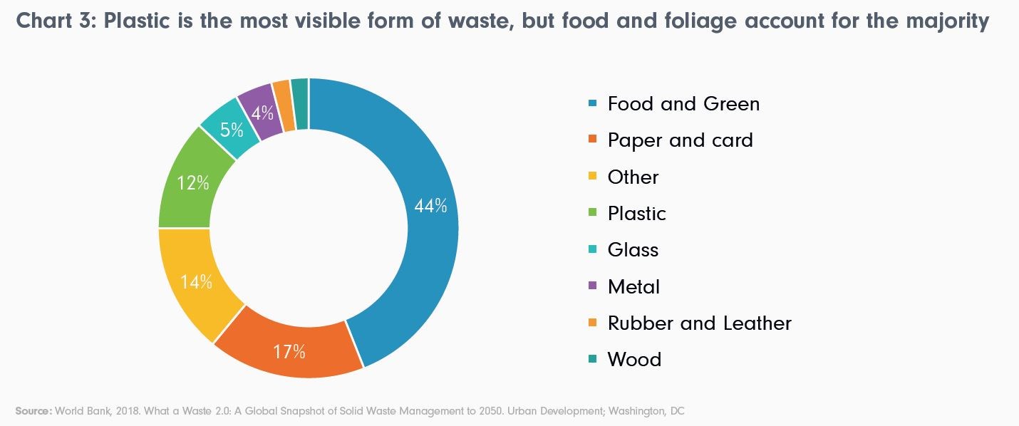 Nejviditelnější formou odpadu je plast, nejvíce je ale potravin a bioodpadu: